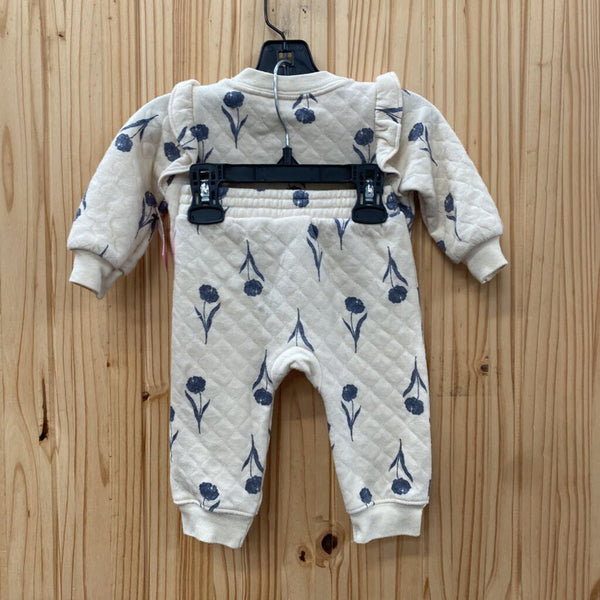 GIRLS CARTERS 2PC SET IVORY W/GREY FLOWERS 6/9M