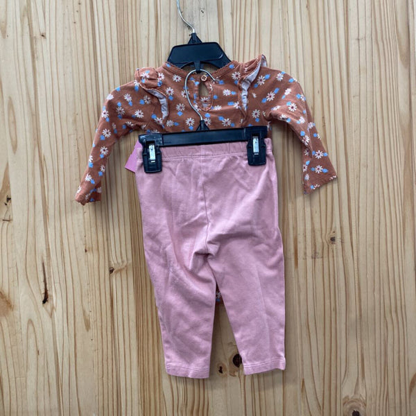 GIRLS CARTERS 2PC SET RUST/MAUVE PINK W/FLOWERS 9M