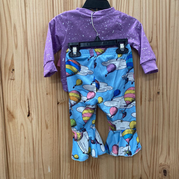 GIRLS OH THE PLACES YOU'LL GO 2PC SET PURPLE/WHITE/SKY BLUE 6/9M