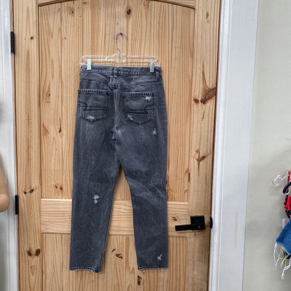 WOMENS AMERICAN EAGLE BLK DENIM DIST. JEANS 6 REGULAR
